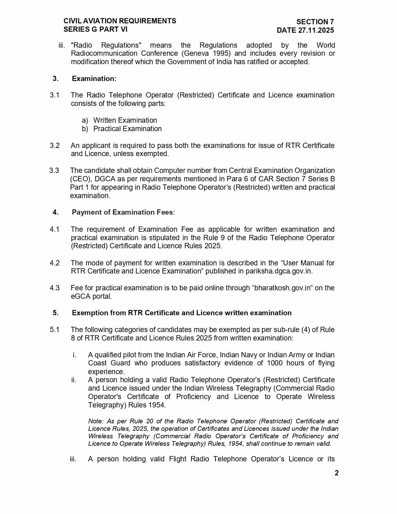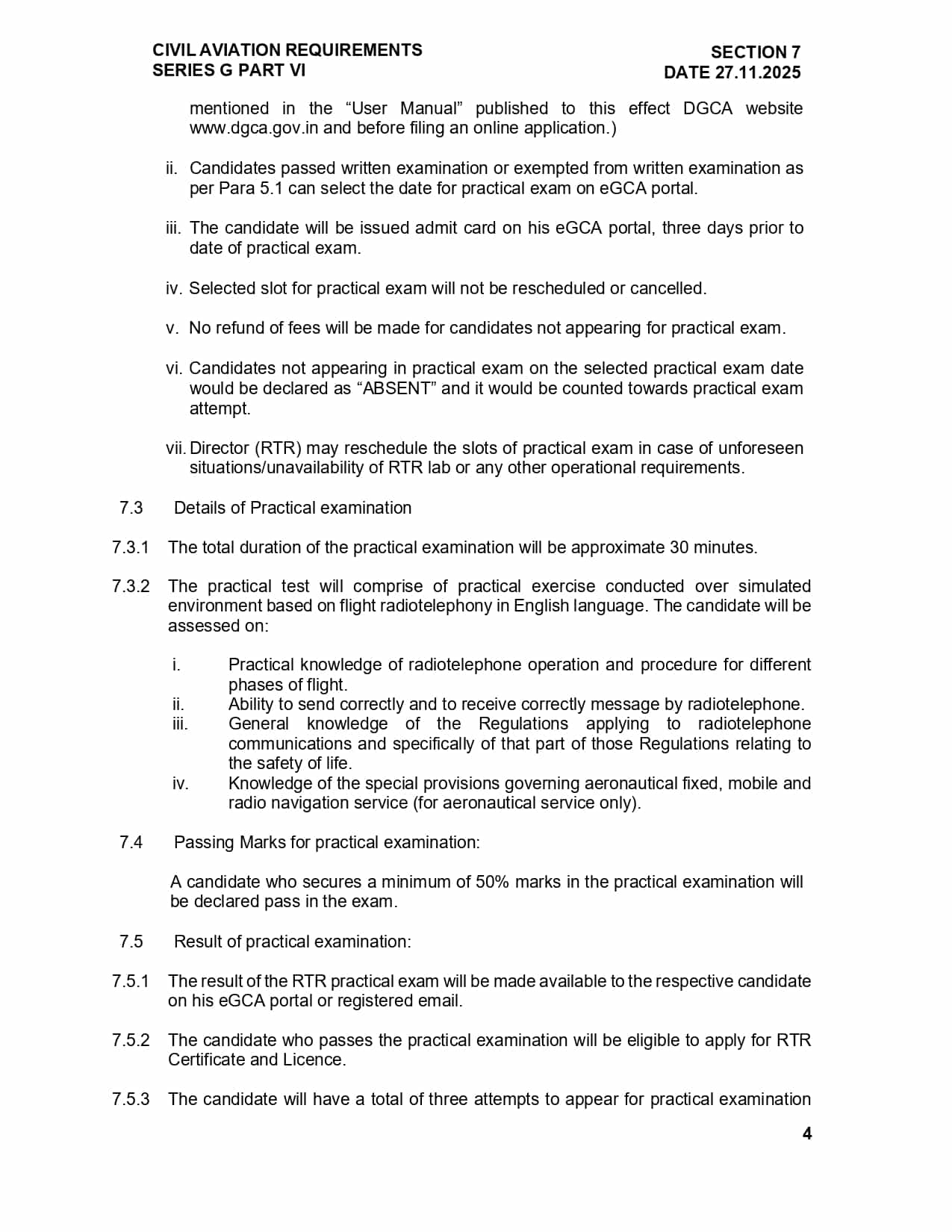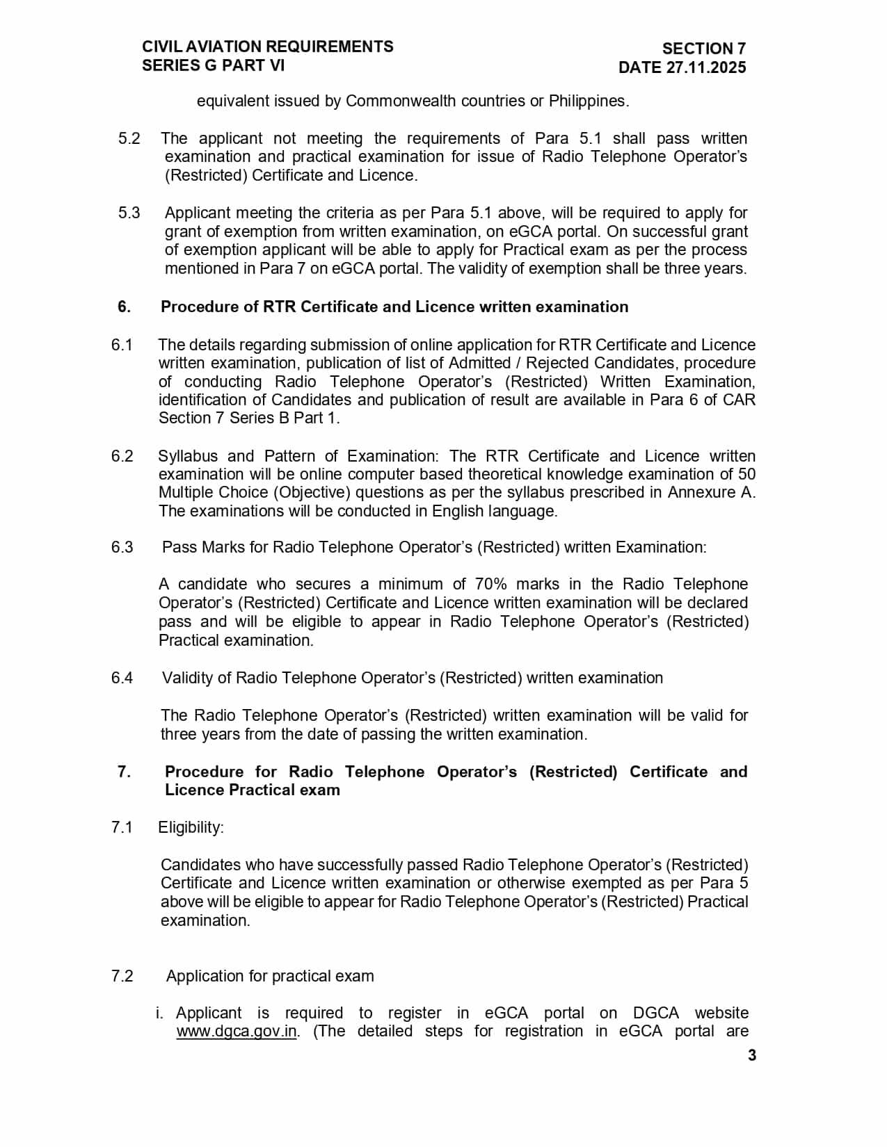 Candidates who pass the written exam (or are exempted as per DGCA rules) are eligible to appear for the practical examination. Successful candidates can then apply for issuance of the RTO(R) Certificate & Licence via the eGCA portal.