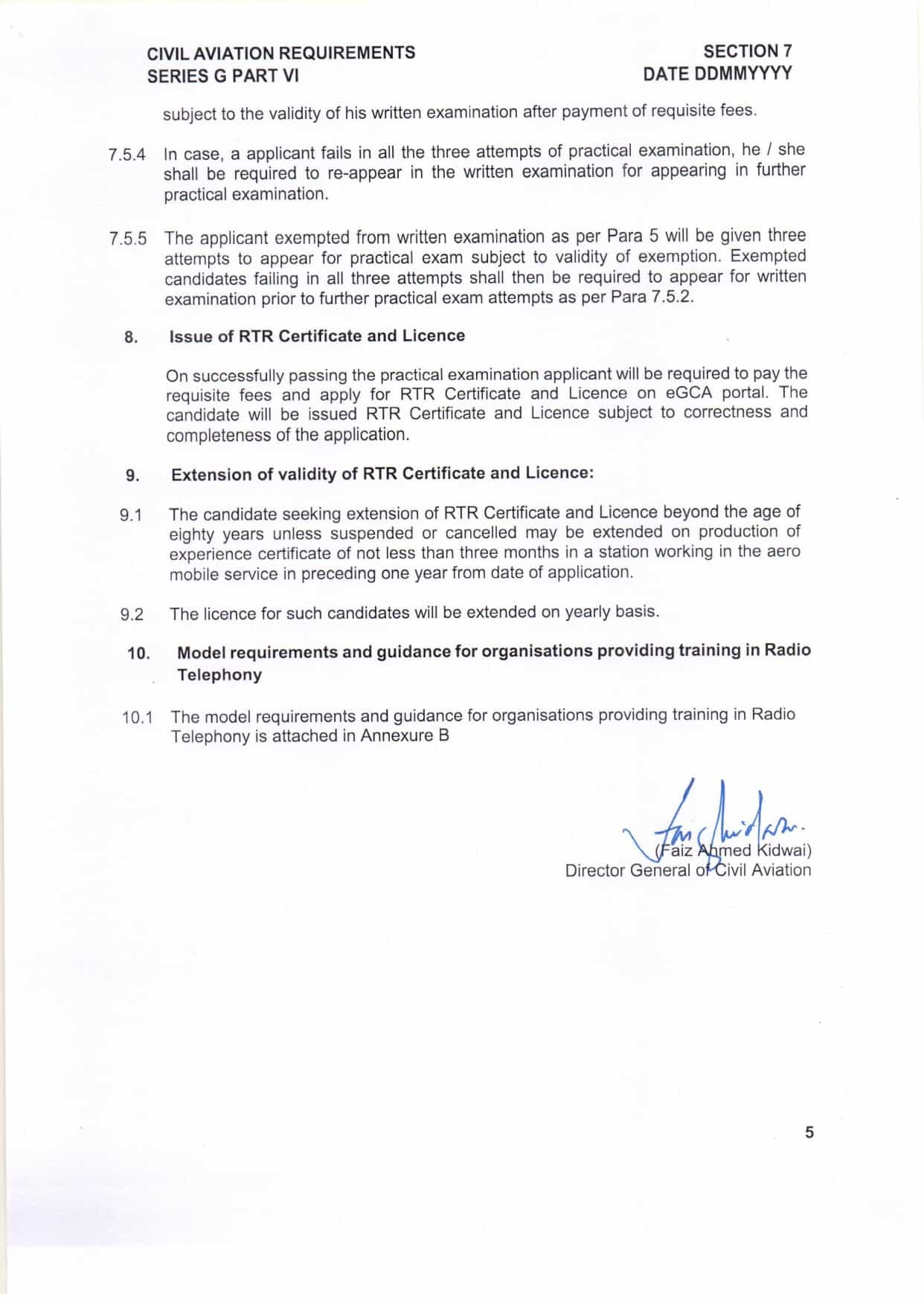 Written Examination – Computer-based test with 50 MCQs covering ICAO regulations, radiotelephony procedures, radio principles, navigation aids, meteorology codes, distress & urgency communications, and standard aviation phraseology. A minimum of 70% is required to pass.